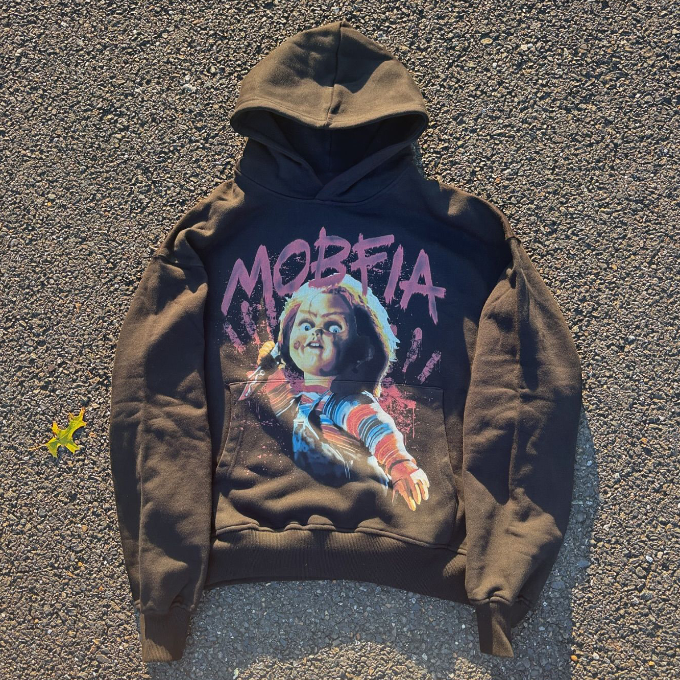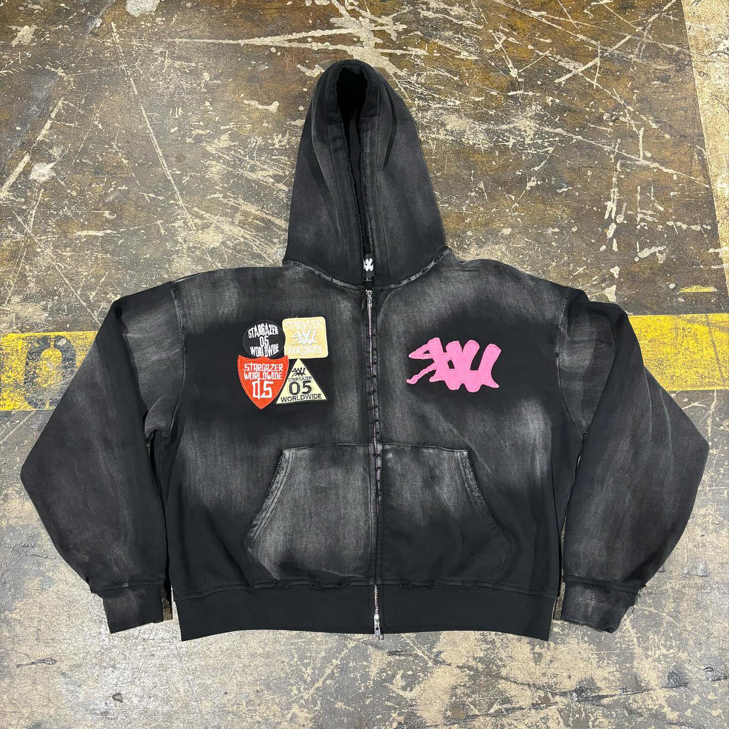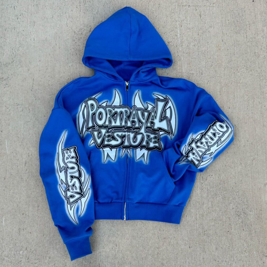 Dio Fear Print Long Sleeve Zipper Applique Embroidered Hoodies